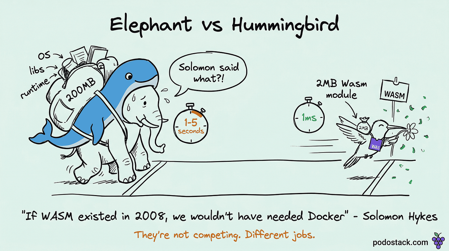 Solomon Hykes (Docker’s co-founder) tweeted it back in 2019: “If WASM+WASI existed in 2008, we wouldn’t have needed Docker.” Bold claim. Let’s see where we are.