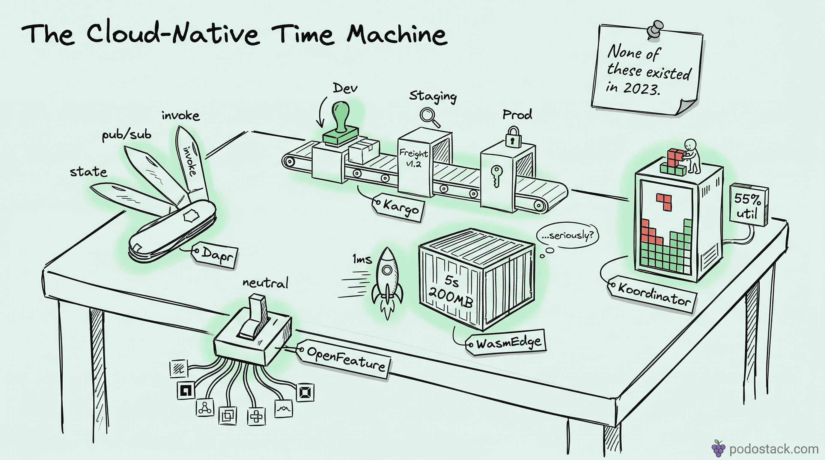 Welcome back to Podo Stack. This week: five tools that feel like they’re from the future. A runtime that abstracts away infrastructure. A GitOps promotion engine by the Argo CD team. WebAssembly challenging containers. A scheduler that squeezes real money out of idle nodes. And a CNCF standard that makes feature flags vendor-neutral.
